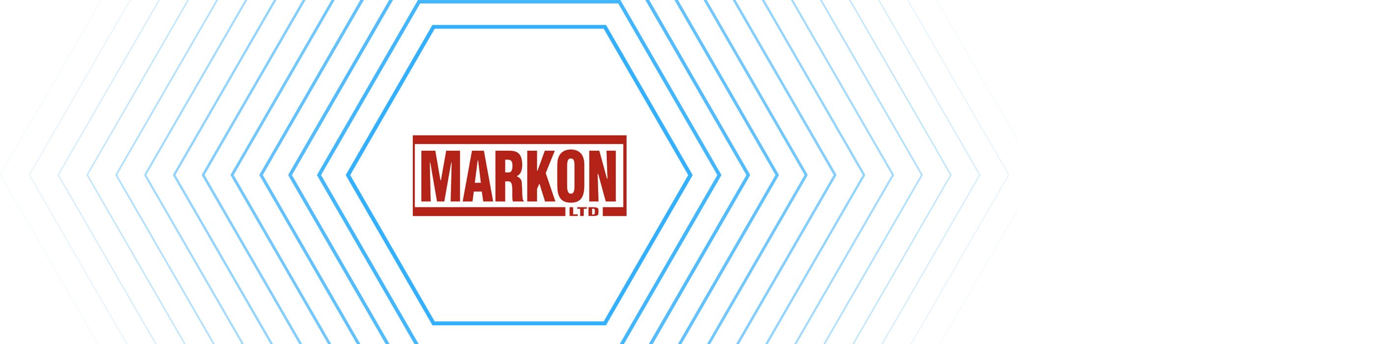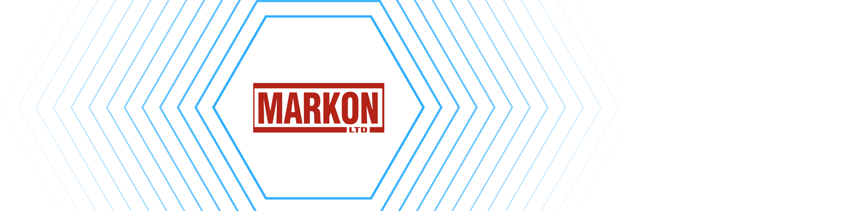 MARKON LTD logo inside a hexagon with blue concentric hexagonal outlines on a black background.