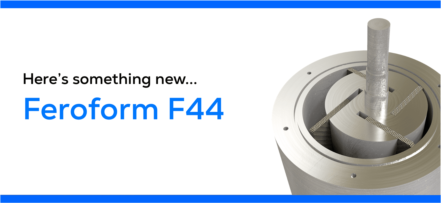 A close-up of a cylindrical metal component with text: Here’s something new… Feroform F44.”.